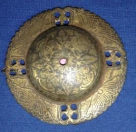 | Description / विवरण | Circular phool made of iron, having golden floral designs. There are 16th holes to fix it with shield. |