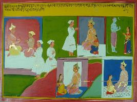 | Description / विवरण | Miniature painting based on Mahabharat - Adi parva depicting Dhritrashtra, Pandu and Vidur gradually grown up. Dhritrashtra become stronger, Pandu become brave and Vidur become intelligent. |