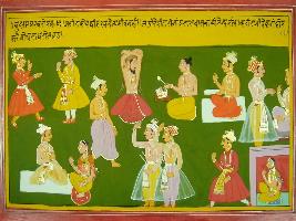 | Description / विवरण | Miniature painting based on Mahabharat - Udyam parva. The painting depicts the Dharma of a king. While a king desire also depicted in the painting. While the painting depicts the above mentioned them. |
