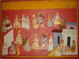 | Description / विवरण | Miniature painting based on Sanskrit drama Malti Madhav. It is a procession scene of either a marriage or a festival. Malti and Madhav is depicted in front of a curtain with Lawangika and Avalokita. |