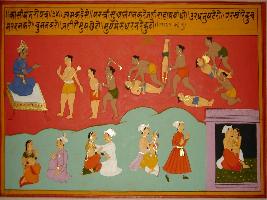 | Description / विवरण | Miniature painting based on Kashi khand depicting some scenes of punishments as told by Yam that are awarded to a man if he maintains illegal relation with other s widow. |