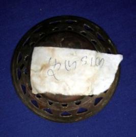 | Description / विवरण | Circular slightly oval shape phool bob made of brass having jali works and incised dot designs in obverse. |