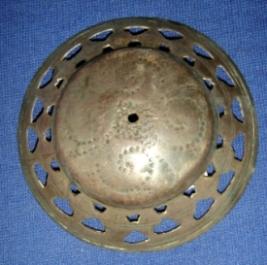 | Description / विवरण | Circular slightly oval shape phool bob made of brass having jali works and incised dot designs in obverse. |