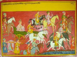 | Description / विवरण | Miniature painting based on Mahabharat - Ashramvas parva depicting march of chaturangi sena with Yudhisthir. |