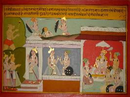 | Description / विवरण | Miniature painting based on Prithviraj Raso depicting court of Jaichand. A Samant came to his court and making him aware of the preparation and training of army for the war with Prithviraj. |