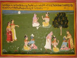 | Description / विवरण | Miniature painting based on Sanskrit drama Malti Madhav depicting Makarand talking to Madayantika about Madhav who is happy due to his meeting with Malti. After that Makarand meet Madhav and talk to him. |