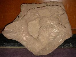 | Description / विवरण | Fragment of a sculpture, with only the head and the arms. Both the arms are raised over the head and holding a beaded necklace. The face and the lower part of the arms are chopped off. |