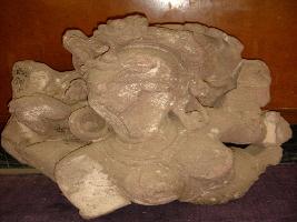 | Description / विवरण | Fragment of a sculpture of a female bust. The left and lower parts of the face and the neck is chopped off. Her head is turned towards her right and she is wearing an elaborate headgear, large, circular earrings, necklace and armlet. Her both arms are chopped off. |