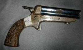 | Description / विवरण | Pistol of four rounds, foreign made having incised and embossed vine design on the butt. The number 5897 is engraved on the mouth of the barrel. |