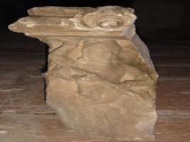 | Description / विवरण | A sculptured architectural fragment probably a part of a plinth depicts a seated celestial figure having four hands. Attributes from right below 1 holding a spear 2 uplifting the load of plinth 3 missing 4 holding a spear. |