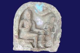 | Description / विवरण | In this memorial stone male and female are worshiping Shiva-Linga. Male is having a beard and female is defaced. |