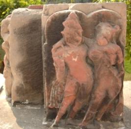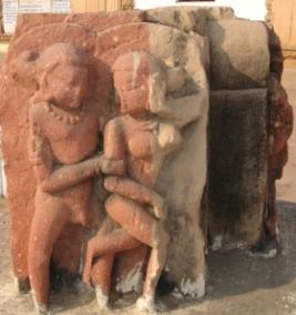 | Description / विवरण | Sculptured architectural fragment of two amorous couples at two sides. |