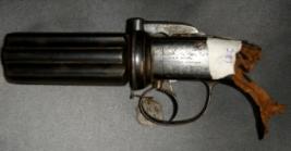 | Description / विवरण | Iron barrel of a revolver with six rounds. The butt is broken. Name of the maker-E and W. Bond, 45 Cornhill, London is engraved, on one side and Improved revolving pistol . On the other side near the trigger . |