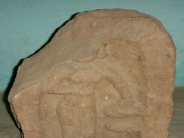 | Description / विवरण | Sculptured architectural fragment, depicting a lady in standing position, whose left hand is on a Shiv linga while, the right hand rests on her waist. |