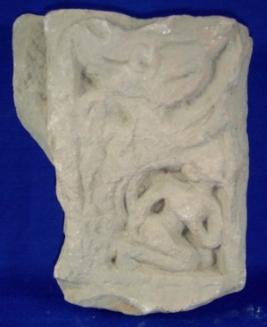 | Description / विवरण | Architectural fragment, probably part of a panel depicting a flying celestial figure in pillared niche. On the upper part some architectural designs are seen. The whole fragment is mutilated. |