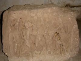 | Description / विवरण | Fragment of wall depicting a procession scene in niche, can not be clearly identified and it is completely mutilated and figures are completely defaced. |