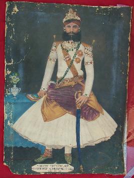 | Description / विवरण | This is a painting of Maharaja Raghubir Singh holding a sword in his left hand. He is in white tunic, Turban. Highly ornamented |
