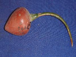 | Description / विवरण | Boar of red colour with curved green steam. It is made of wood. |