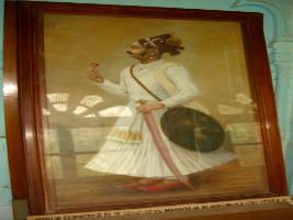 | Description / विवरण | Full length portrait of Maharaja Bijay Singh ji, standing facing right holding a horse in his right hand and a sword on his left hand. A shield is tied with the belt on his waist. He is wearing a turban. |