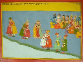 | Description / विवरण | Miniature painting based on Mahabharat - Ashramvas parva. The painting depicts that Pandavas meeting with Karna, Abhimanyu in the bank of the river Ganga which is happen practice by the grace of Vyas. |