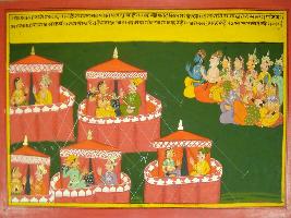 | Description / विवरण | Miniature painting based on Mahabharat - Ashramvas parva. The painting depicts Dhritrashtra, Gandhari and Pandavas are going with Vyas in the vana than they got to see that many gandharvas are singing, dancing and playing musical instruments. |