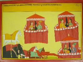 | Description / विवरण | Miniature painting based on Mahabharat - Ashramvas parva depicting the camps of Pandavas that they had made in time of their journey. |