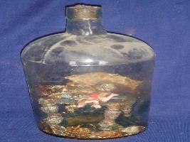 | Description / विवरण | Large glass bottle used for decorative purpose. Inside it, are handcrafted small figurines of Ram Durbar over a cot and salma -sitara. The figures are coloured and decorated but broken from the surface. |