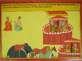 | Description / विवरण | Miniature painting based on Mahabharat - Ashramvas parva. The painting depicts king Janmejaya asking Sanjay, he replied that Dhritrashtra went to vana while Vidur also went to Sindhu for meditation and Pandavas began to rule over there. |