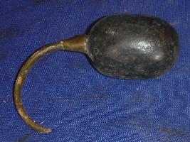 | Description / विवरण | A small brinjal of black colour, made of wood, having semi circular green stem. |