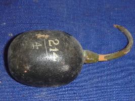 | Description / विवरण | A round brinjal of black colour, made of wood, having a curved stem of green colour. |