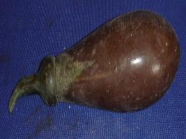 | Description / विवरण | Brinjal, made of wood, having bulbous shape of black colour and green stem. |