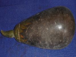 | Description / विवरण | Brinjal, made of wood, having bulbous shape of black colour and green stem. |
