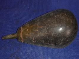 | Description / विवरण | Brinjal, made of wood, having bulbous shape of black colour and green stem. |