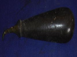 | Description / विवरण | A long brinjal with plain surface, made of wood, with a curved stem. |
