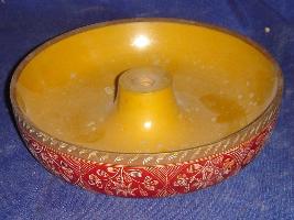 | Description / विवरण | Candle stand, made of wood, on the outer side floral design are made. The inner side has a circular depression. |