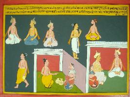 | Description / विवरण | Miniature painting based on Mahabharat - Rajdharma parva. Some kings and Rishi s are depicted here a rishi depicted here sitting with a daughter and she is sitting married to one kings. |