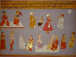 | Description / विवरण | Miniature painting based on Sanskrit drama Malti Madhav depicting purer talking to a fairy and later he is asking about the identity of Madhav to Kamandaki. She then told him that Madhav is son of Pradhan of king of Vidarbha state. |