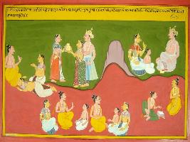 | Description / विवरण | Miniature painting based on Mahabharat - Rajdharma parva. Parasurama was borned to Jamdagni and he had penanced Shiv, on the Gandamadan hill Shiv given him the parasu or the axe. |