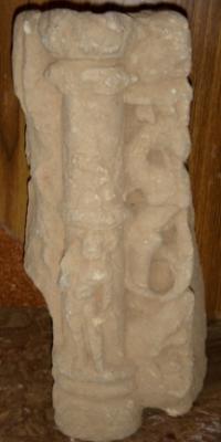 | Description / विवरण | Sculptured architectural fragment depicting a vyala and on its left a human is carved on a small pillar. |