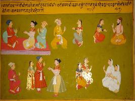 | Description / विवरण | Miniature painting based on Sanskrit drama Malti Madhav depicting Malti talking to Kamandaki and Kamandaki telling her about the story of Shankutala and Dushyant. |