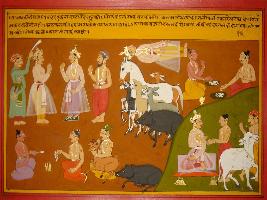 | Description / विवरण | Miniature painting based on Mahabharat - Rajdharma parva depicting Ratideva. He has been depicted doing various sacrifices. |