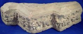 | Description / विवरण | Sculptured architectural fragment depicting in a panel an amorous couple in extreme right in pillared niche. Next to it four seated human figures are depicted but face and right arm of the figure at right is chopped off. Next to its left two men are depicted trying to control an elephant. To the extreme left two musicians and two demons are depicted in niche. |