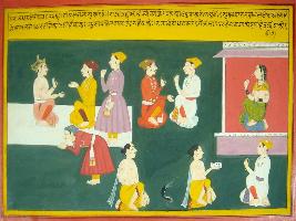 | Description / विवरण | Miniature painting based on Mahabharat - Rajdharma parva depicting Bhishma is telling Yudhisthir that a king should be hard working and devoted to his work and kingdom. Then he tells Yudhisthir about slokas spoken by Sukra charya. |