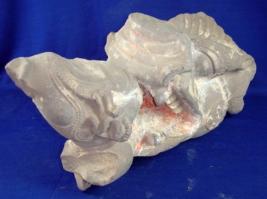 | Description / विवरण | Sculptured architectural fragment depicting a crocodile head from which a man is coming out. The head of man, his right arm, upper part of the mouth of crocodile are broken. The left hand of the man is seen on his chest. |
