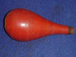 | Description / विवरण | Chilly, made of wood in red colour. The stem is missing and a circular depression is visible in the lower part. |