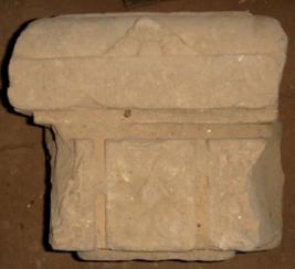 | Description / विवरण | Architectural fragment depicting full blown lotus carved in between two vyala figures. |