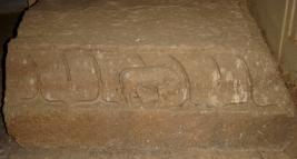 | Description / विवरण | Architectural fragment depicting a cow and its calf drinking milk. |