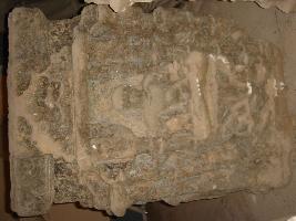 | Description / विवरण | An independent sculpture of seated yogi in padmasana, probably sakulish . He is holding a Bijpurak in right and club in left hand, which is now broken. He is flanked by low standing female attendants. |