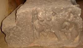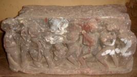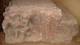 | Description / विवरण | Sculptured architectural fragment depiction warriors on elephant on 3 sides. Some warriors are controlling the elephant, walking on feet. The figures are mostly chopped off. |
