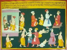 | Description / विवरण | Miniature painting based on Mahabharat - Rajdharma parva depicting Bhishma is telling about slokas of guru Shukracharya regarding bad peoples and sinners. |